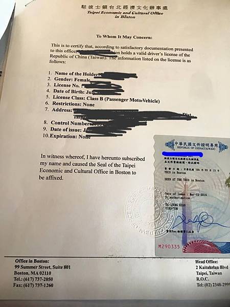 協議簽署後立即生效,凡年滿18歲持中華民國有效普通小型汽車或普通重型機車駕照,居住於麻州且具美國有效居留(非短期觀光或商務停留)簽證的國人可至位於波士頓Haymarket Center的監理所(地址:136 Blackstone Street, Boston, MA)直接申請換發麻州駕照,免除筆試及路考。另基於互惠原則,取得中華民國居留證且居留期限超過1年的麻州有效小型汽車(D類)或機車駕照持有人,亦可檢附相關文件免試申領台灣相同類別駕照。(點此見新聞出處)Agent C 發表在 痞客邦 留言(1) 人氣(13,111)